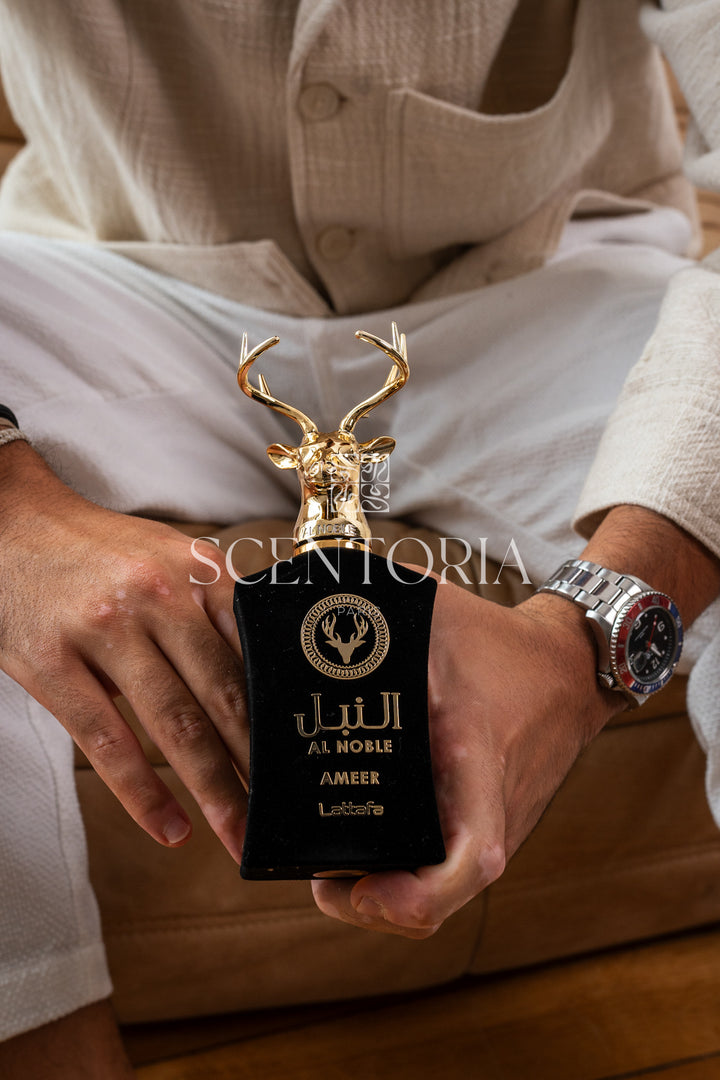 Al Noble Ameer ist ein berauschender Duft, der die Essenz von Selbstvertrauen und Kühnheit einfängt. Mit seinen reichen und fesselnden orientalischen Noten ruft dieser Duft ein Gefühl von Geheimnis und Raffinesse hervor. Ob für einen besonderen Abend oder einen gewöhnlichen Tag, Al Noble Ameer ist der perfekte Begleiter für alle, die mit Eleganz und Charisma auffallen möchten. Lassen Sie sich von diesem bezaubernden Duft mitreißen und lassen Sie Ihren Stil für sich sprechen.