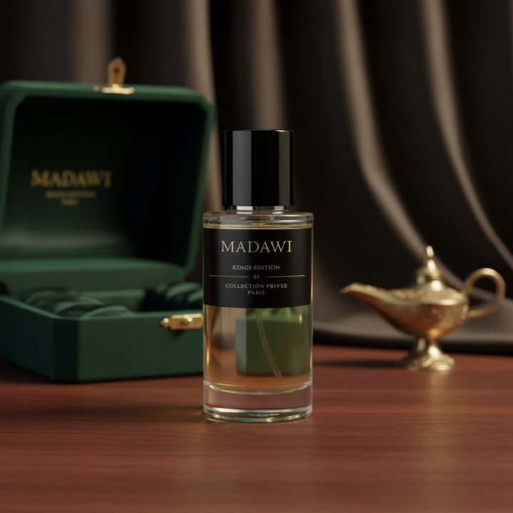 Madawi aus der Private Collection ist ein üppiger und raffinierter Duft, inspiriert von Eleganz und Mysterium. Der verführerische Auftakt vereint fruchtige Noten von Pfirsich und Ananas und entfaltet eine betörende Süße. Die Herznote, ein subtiles Blumenbouquet aus Rose und Jasmin, harmoniert mit modernen Nuancen. Die Basisnote, reich an samtigem Moschus und edlen Hölzern, hinterlässt eine warme und betörende Spur. Madawi ist die ideale Wahl für alle, die einen anspruchsvollen und zeitlosen Duft suchen, der ihre Präsenz mit Anmut und Eleganz unterstreicht.
