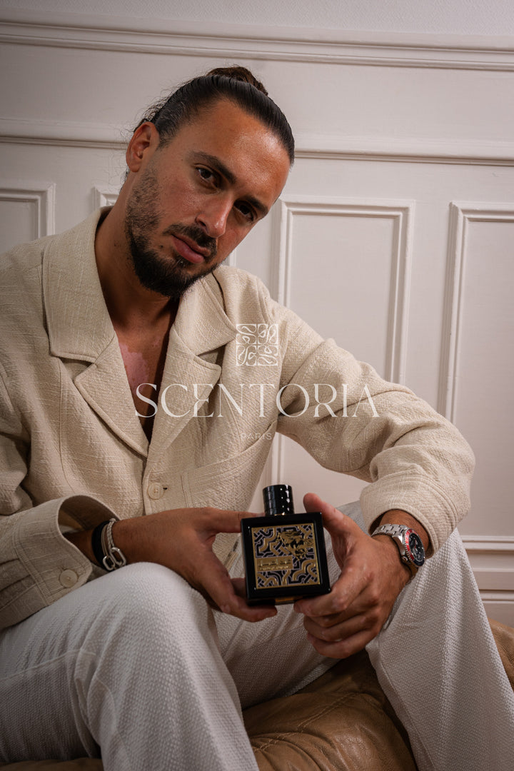 Die olfaktorische Komposition dieses Duftes beginnt mit exquisiten Kopfnoten aus süßer Ananas und königlichem Safran und entwickelt sich dann zu einer magnetischen Herznote aus Jasmin und Balsamtanne. Schließlich runden sinnlicher Amber, tiefes Oud und holziges Zedernholz dieses Sinneserlebnis ab.