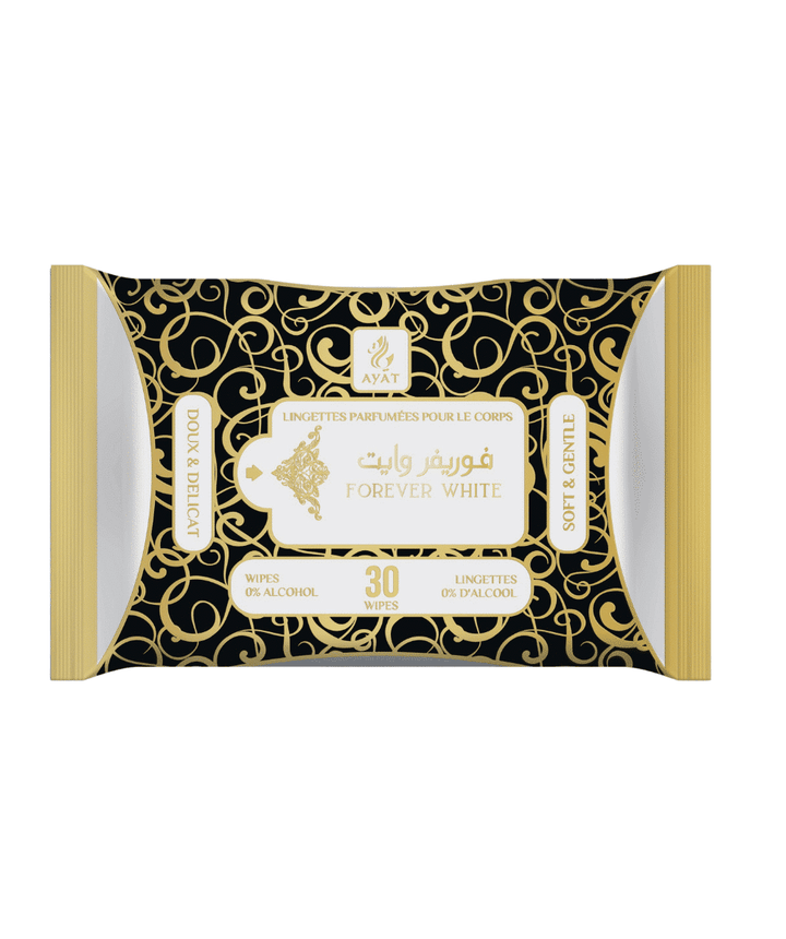 Les Lingettes Forever White par Ayat Perfumes enveloppent délicatement vos sens d’une symphonie de parfums, conçues pour tous et idéales pour un usage quotidien. Elles débutent avec des notes de tête de Rose, Iris, Musc et un bouquet Floral, évoluant vers un cœur poudreux mêlant Violette, Vanille, Héliotrope et Fève de Tonka. Le final révèle des notes de fond de Musc Blanc et Bois de Santal, laissant une impression durable de propreté et d’élégance. Parfaites pour se rafraîchir à tout moment, ces lingettes sont votre secret pour une fraîcheur élégante et durable.